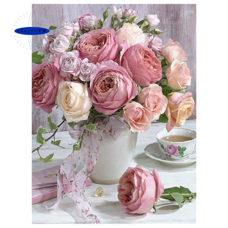 Yumeart 5d Diy Diamond Painting Three Pink Roses Flower Glass Vase Blooms Pattern Cross Stitch Decor Rhinestone Embroidery Kits Diamond Painting Cross Stitch Aliexpress 50 40cm Vase Flower 5d Diy Diamond Painting Kits